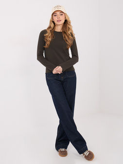 Czekoladowa bluzka basic z okrągłym dekoltem