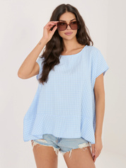Jasnoniebieska bluzka z nadrukiem i krótkim rękawem