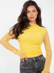 Jasnożółta koronkowa bluzka z drapowaniem