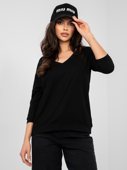 Czarna damska bluzka basic z rękawem 3/4 RUE PARIS