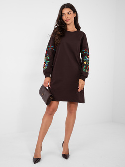 Czekoladowa dresowa sukienka z miękkiej tkaniny RUE PARIS