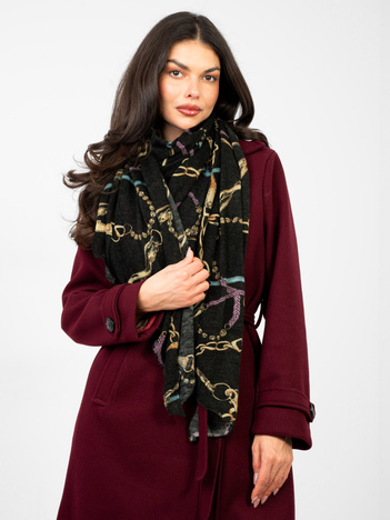 Czarna damska chusta z printem