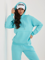 Fluo różowy damski komplet dresowy z kapturem Liana