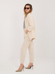 Beżowy damski garnitur z marynarką bez zapięcia RUE PARIS