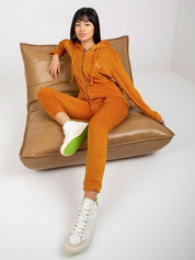 Pomarańczowy komplet welurowy z dekoltem w serek RUE PARIS