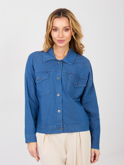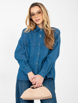 Niebieska jeansowa koszula damska oversize z bawełny z kołnierzykiem