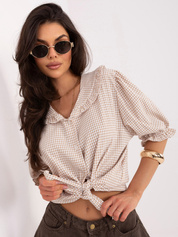 Beżowa dwukolorowa koszula w kartę z dużą kieszenią