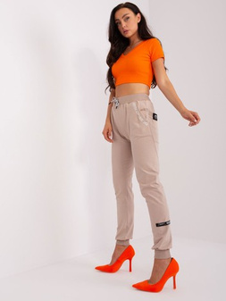 Ciemnobeżowo-czarne spodnie dresowe w panterkę z kieszeniami
