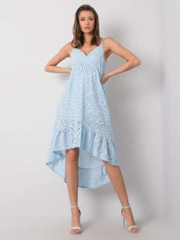 Jasnoróżowa sukienka z wycięciami i ażurowaniem