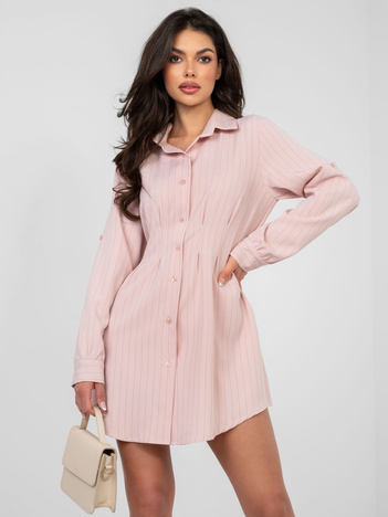 Jasnoróżowa sukienka szmizjerka z kołnierzykiem RUE PARIS