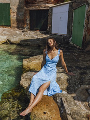 Niebieska sukienka z falbaną Genevieve RUE PARIS