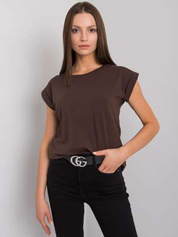Czekoladowy t-shirt basic z dekoltem V RUE PARIS