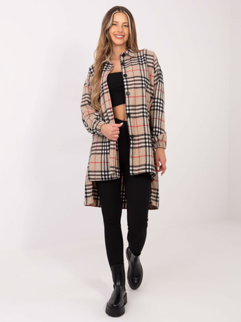 Beżowo-czarna asymetryczna koszula w kratę z kieszeniami Bonnie