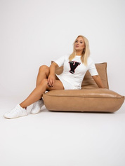 Ecru bluzka damska z nadrukiem i krótkim rękawem