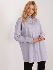 Niebieska jeansowa koszula damska oversize z bawełny z kołnierzykiem