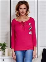 Bluzka ciemnoróżowa lace up z naszywkami.