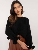 Wymiary swetra w rozmiarze one size mierzone na płasko: szerokość pod pachami - 60 cm, długość całkowita - 63 cm, długość rękawa - 36 cm (od szwu), szerokość w biodrach - 45 cm (na płasko), szerokość w biodrach - 78 cm (po rozciągnięciu).