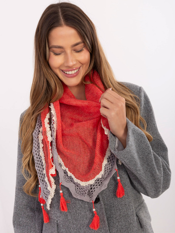 Koralowa trójkątna chusta z frędzlami