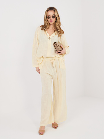 Pastelowy żółty komplet z szerokimi spodniami RUE PARIS