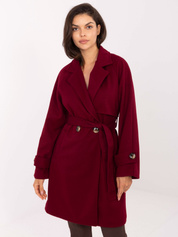Bordowy dwurzędowy płaszcz damski RUE PARIS