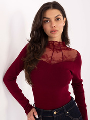Bordowa elegancka bluzka z koronką