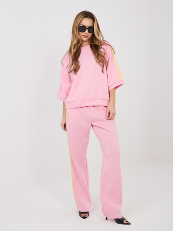 Pastelowy różowy komplet z kontrastowymi lampasami RUE PARIS
