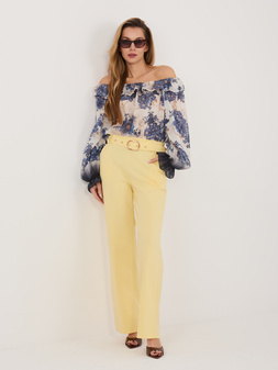 Jasnożółte bawełniane spodnie z szeroką nogawką