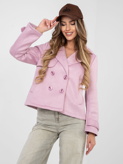 Pastelowy różowy krótki płaszcz z dwurzędowym zapięciem