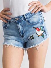 Niebieskie jeansowe szorty z naszywkami
