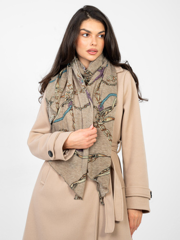 Beżowa damska chusta z nadrukiem