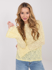Jasnożółta koronkowa bluzka z dekoltem w łódkę