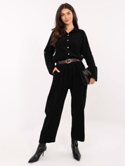 Czarna casualowa damska koszula sztruksowa z długim rękawem