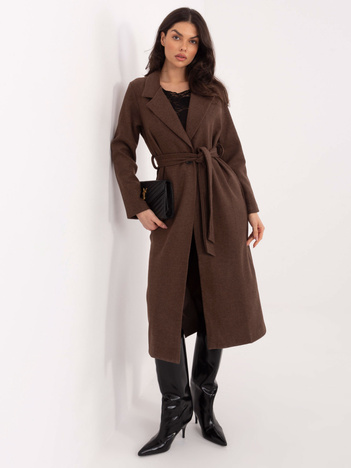 Brązowy długi płaszcz z kieszeniami OCH BELLA