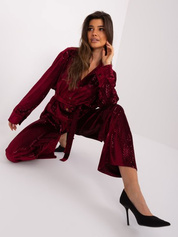 Bordowe materiałowe spodnie od garnituru z kieszeniami