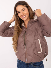 Ciemnobeżowa przejściowa kurtka z kieszeniami