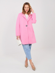Pastelowy różowy przejściowy płaszcz z broszką RUE PARIS