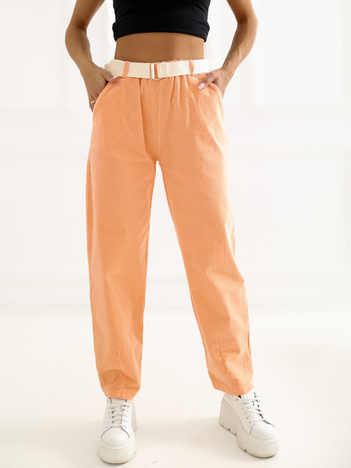 Jasnopomarańczowe sztruksowe spodnie z paskiem