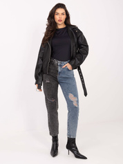 Niebiesko-czarne dwukolorowe spodnie jeansowe z dziurami RUE PARIS