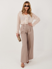 Beżowe spadochronowe spodnie bez zapięcia RUE PARIS