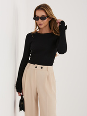 Czarna dopasowana bluzka z długim rękawem RUE PARIS