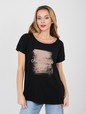 Czekoladowa bluzka basic z krótkim rękawem RUE PARIS