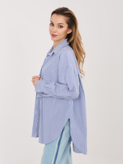 Niebiesko-czarna koszula w panterkę z imitacji satyny