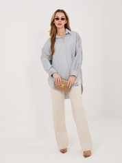 Biało-brudnoróżowa koszula z nadrukiem i szerokim rękawem