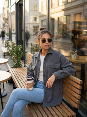 ( ilość produktów: 4 )Ciemnoszara ciepła koszula damska z kieszeniami