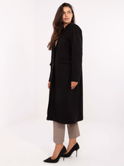 Czarny długi płaszcz damski z kołnierzem
