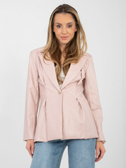 Jasnoróżowa taliowana marynarka z ekoskóry RUE PARIS