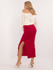 Czerwona midi spódnica dopasowana w prążek