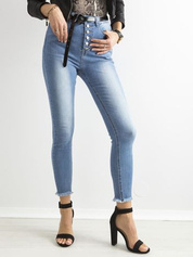 Niebieskie przecierane jeansy z wysokim stanem i guzikami