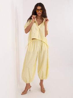 Jasnożółte sztruksowe spodnie z baloniastymi nogawkami